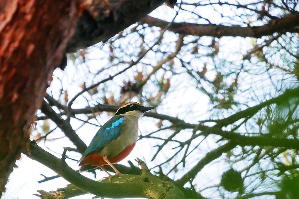 理由は、下の方から仲間が一人やって来たからです。これにてヤイロチョウは終了。