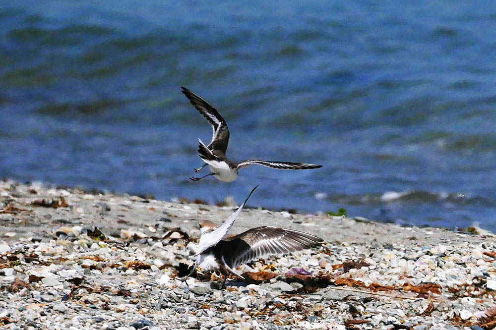 そんな中、海岸を散歩している人の動きに合せ飛翔にも挑戦し数枚の撮影に成功。
