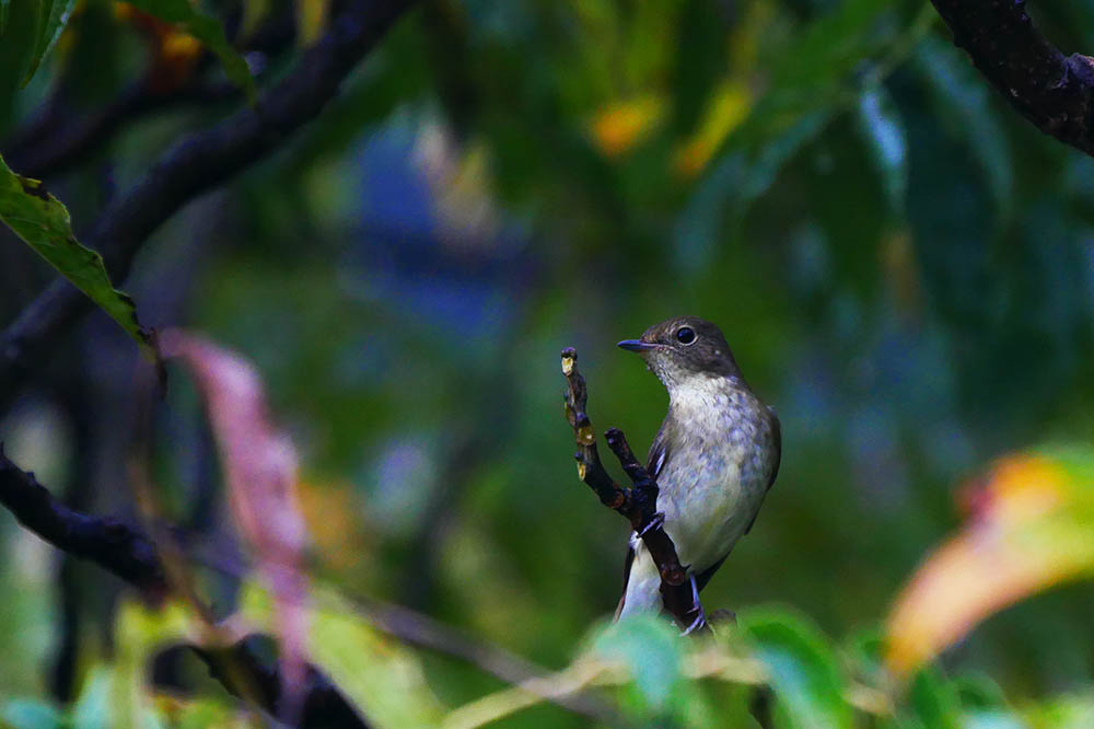 動いて枝に止まると一旦停止しますが、次の動作に移るのが他のヒタキより素早い。