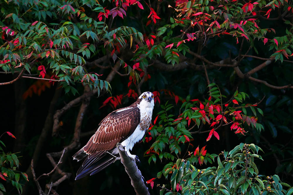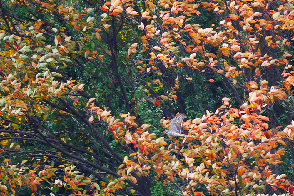 8月はタブノキ。9月~10月はミズキとクマノミズキ。10月~11月はカラスザンショウとアカメガシワやエノキ。12月~1月はハゼの木などに、実を啄む小鳥が集まります。