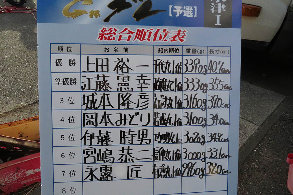 今回の鶴見は過去にないほどの貧果でした。通常は5魚種を揃えるのは5~6人ですが今回は2人だけ。4魚種と3魚種を合せても7名だけという厳しい大会でした。
