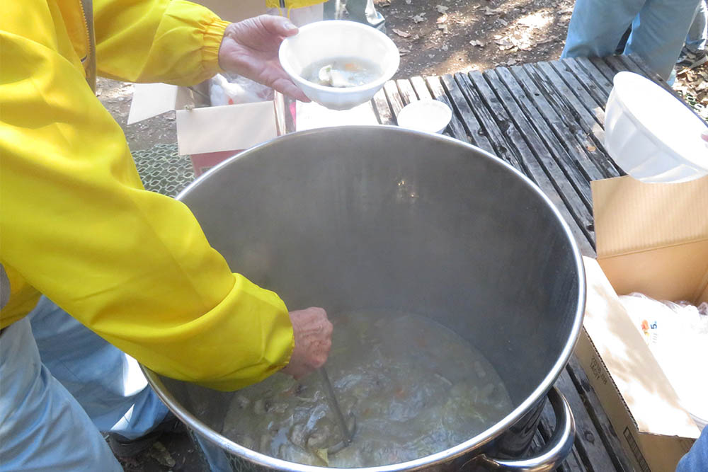 場所は市内高尾山公園の一角、スタッフの皆さんに猪鍋を振舞って頂き・・・