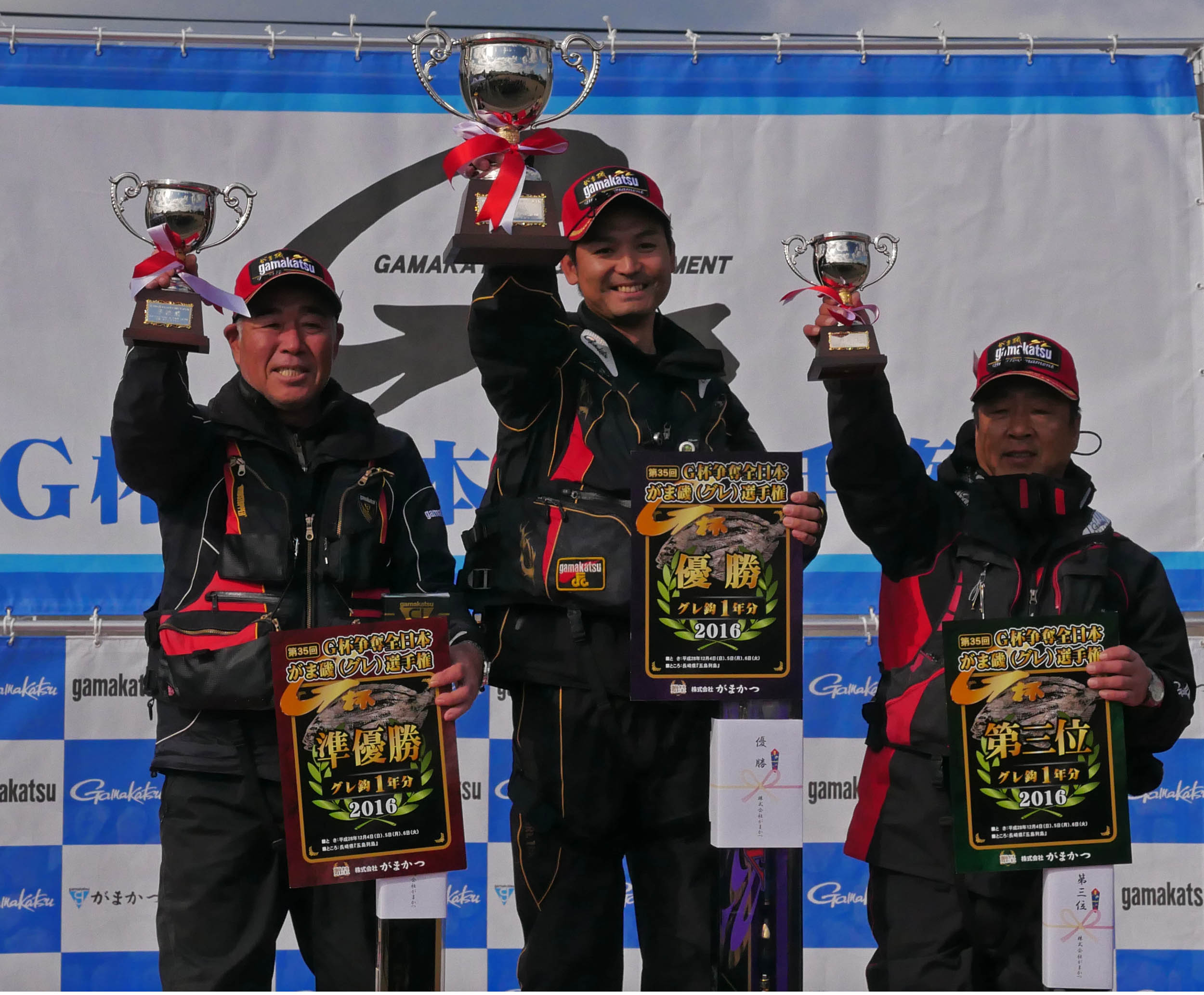 中司君、おめでとうございます。GFG九州地区本部・北九州支部・釣研FG・サンラインスタータスクラブ・福岡グレ競友会の皆様、おめでとうございます。