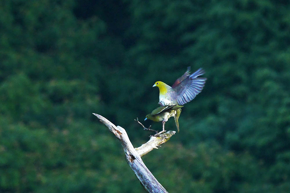 アオバトのマウンティング