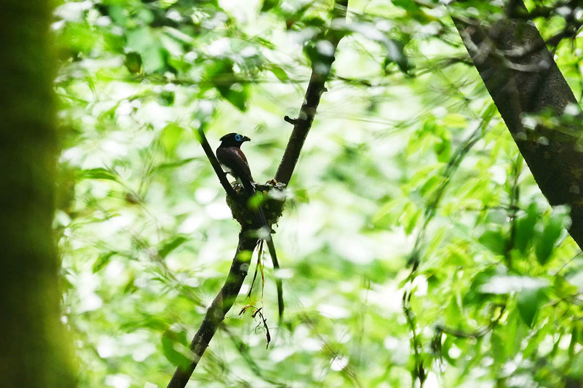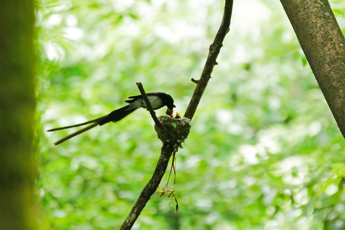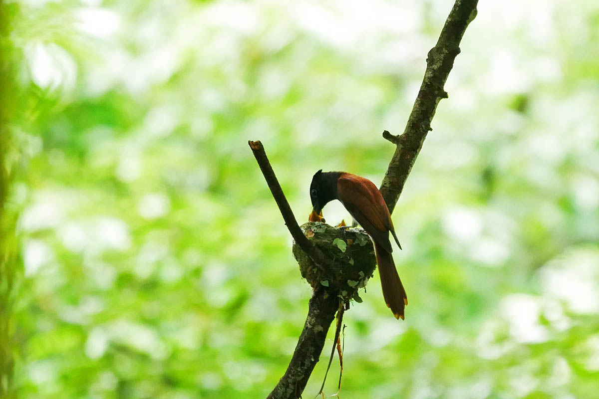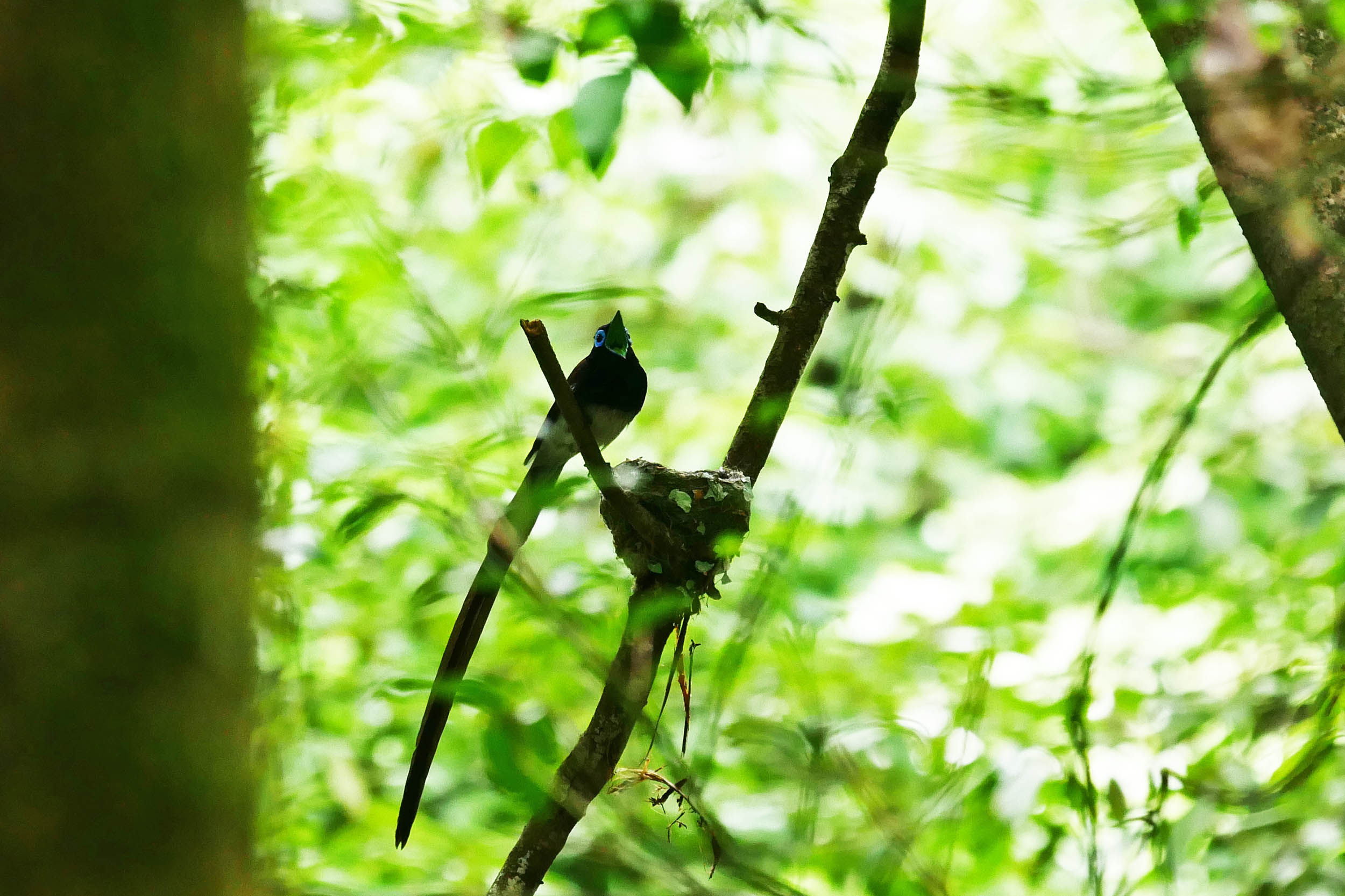22日15時頃のお父さん、サンコウチョウは口腔内の緑色を写すべし