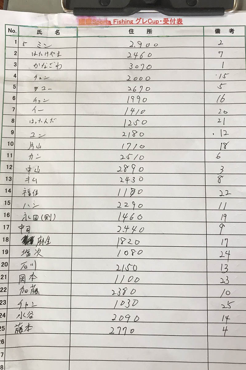 この大会は日本の釣りクラブ、福岡グレ競友会の福住会長と、韓国のZeroFGのミン会長の友情から生まれた大会で、お二人や両クラブの志に共感しての参加です。