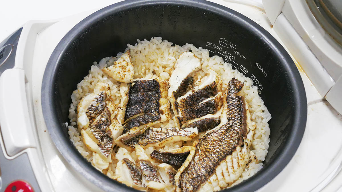 ⑨ 炊き上がったら、お茶碗のご飯の上に置く切り身だけを取り出す