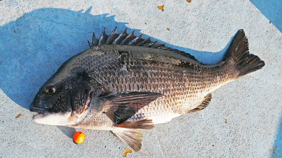 今時期は、水温低下でマダイもチヌも底から1m以内が狙うタナ