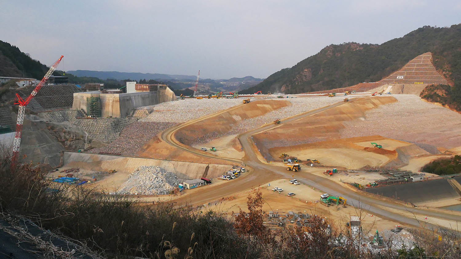 大分川ダムは急ピッチで建設中