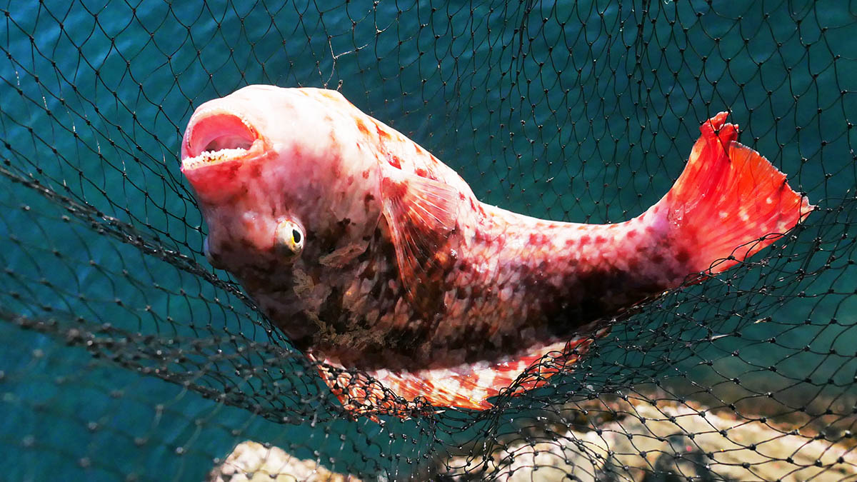 このブダイの♀、撮影用に青海苔のエサで釣りました