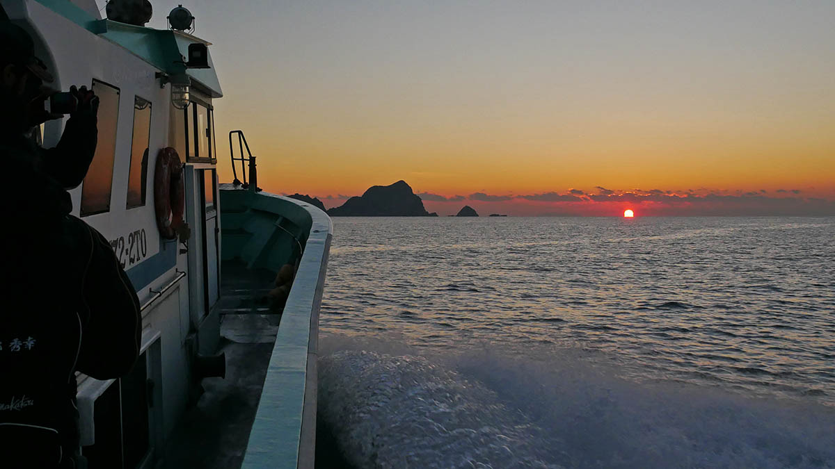 19日の日の出前、定置網漁を終えて帰港中の漁船