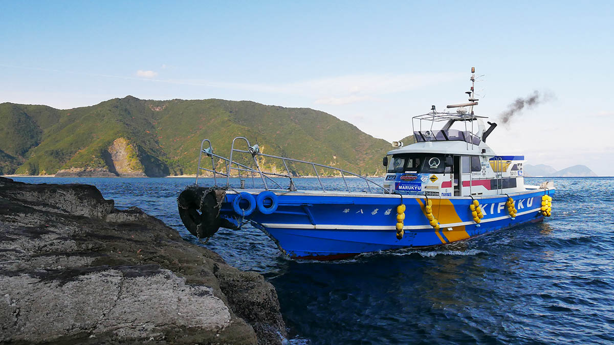 その後はヤマちゃんの触れ合い体験を行い、蒲江の十勝丸に移動して昼食。