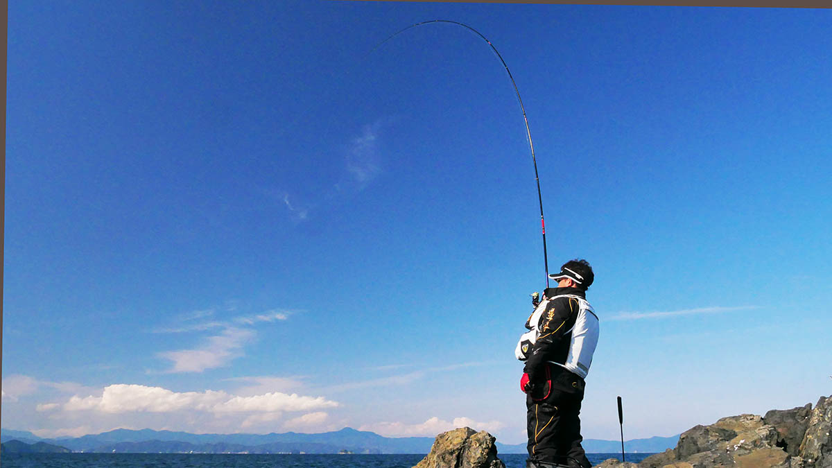 利光君の竿曲げ、大型グレか小型カンダイ?