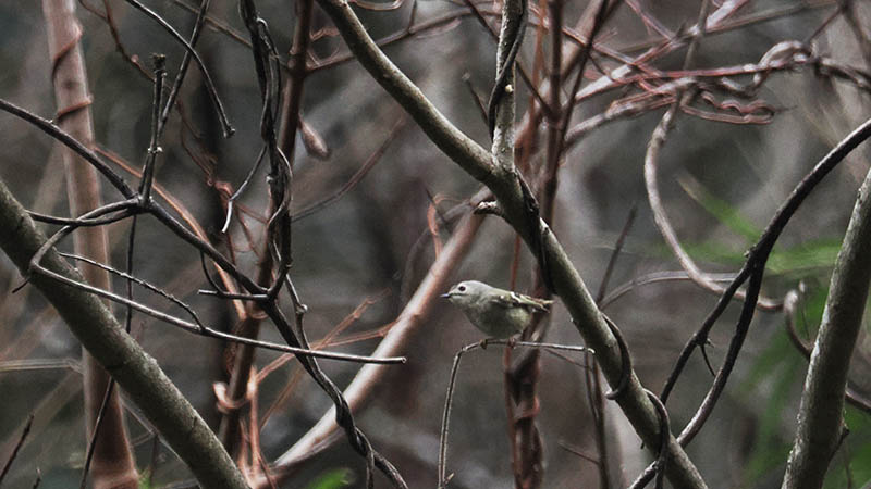 適当に撮影していると、更に小さな鳥もフライングキャッチをし始めた。日本最小の小鳥であるキクイタダキが2~3羽で羽虫を食べている。