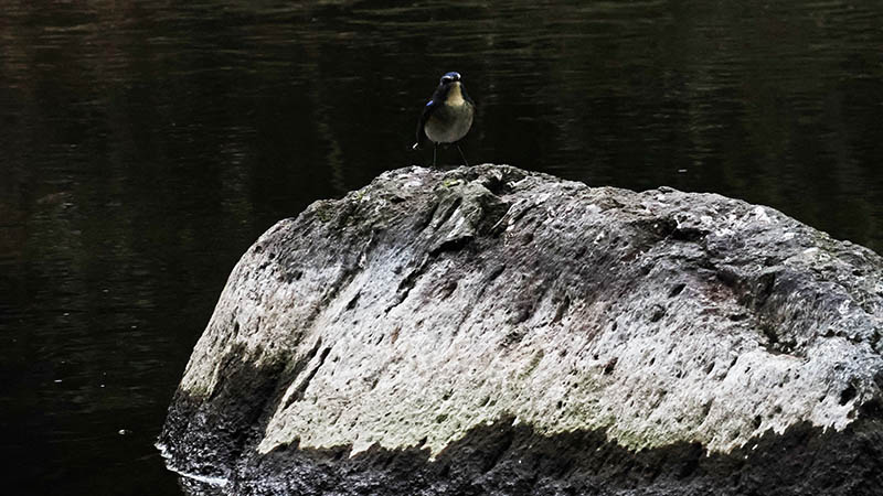 ついでにルリビタキも出て、レアーな川石の上での撮影にも成功。