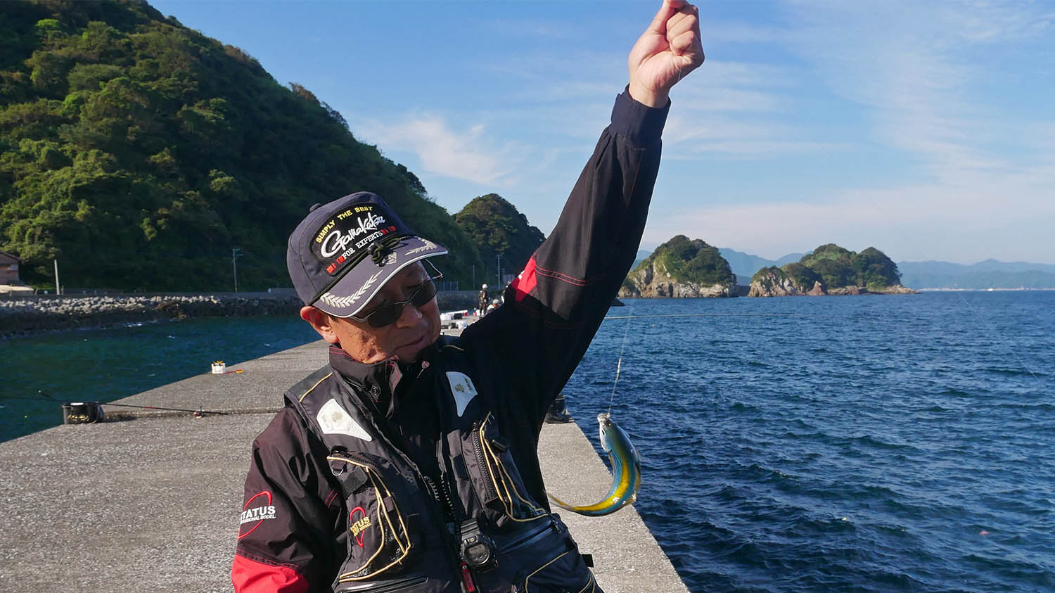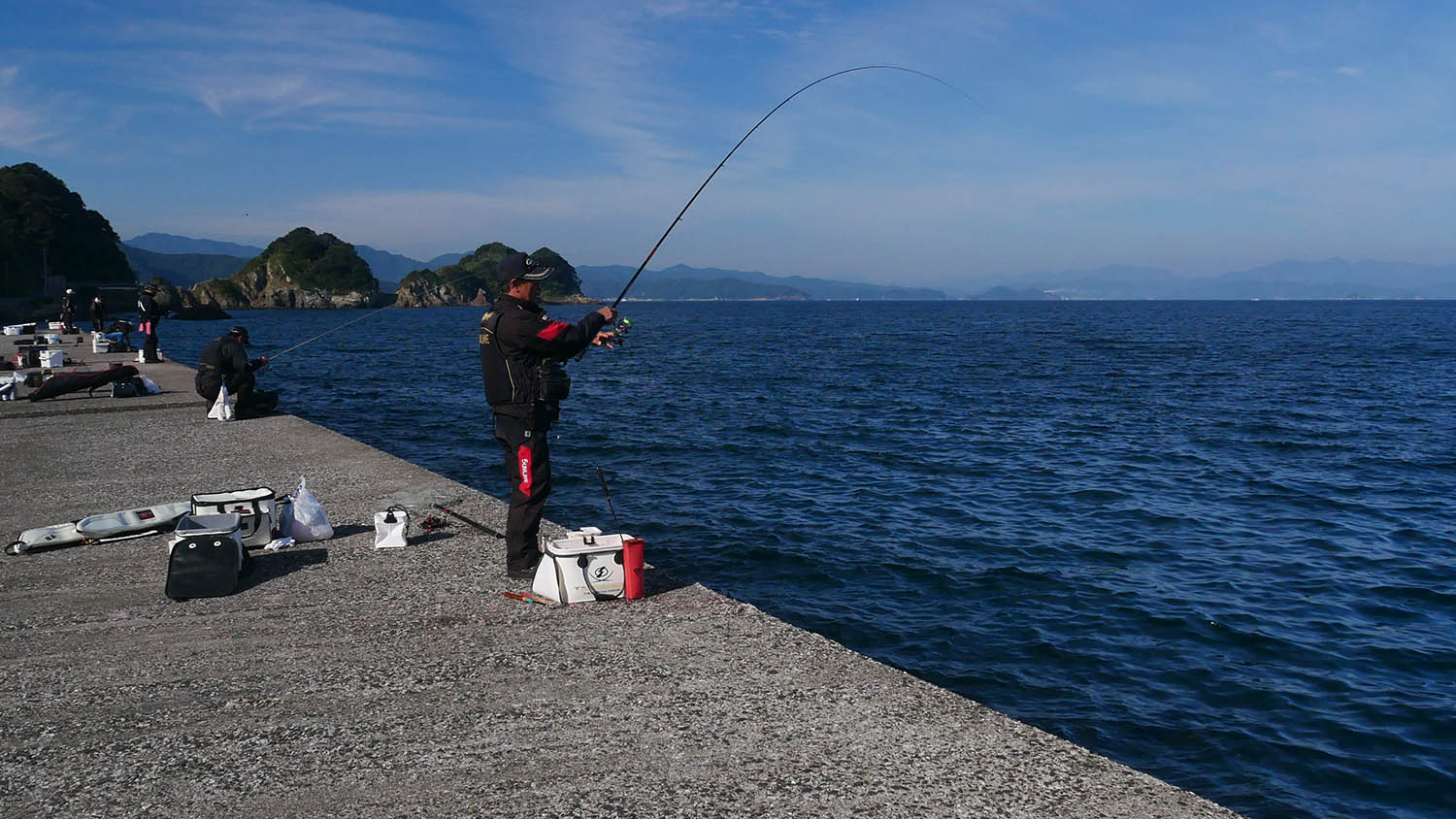 抽選で一緒になったのは田﨑さん。水道でまともに竿を振るのは初めてでしたが、早朝の干潮から満ち潮一杯は30㎝前後のグレが二人で20枚近くは釣れました。