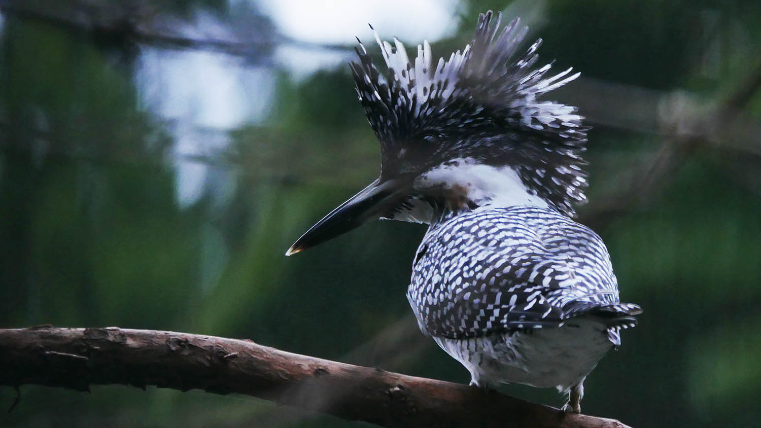 ヤマセミ夫婦は基地の直上の第三ジャンプ台にも止まってくれましたが、この場所からも飛び込む事はありませんでした。手前の枝は次回手入れをしておきます。