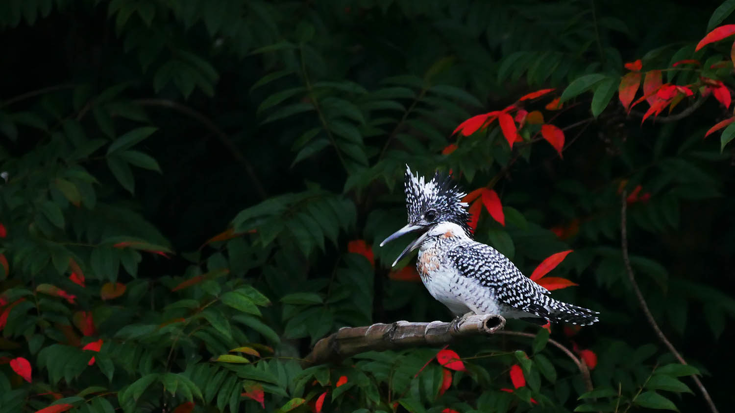 第一ジャンプ台はヤマセミが来る直前にアオサギが休憩しており、ヤマセミ夫婦はやむなく第二ジャンプ台に止まり、思いもよらない紅葉ヤマセミもゲット出来ました。