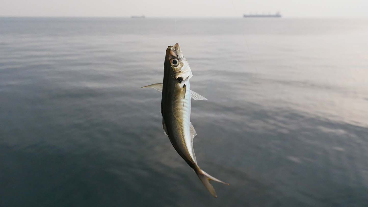 このサイズのアジはOK。昼は単発ですが夜は沢山釣れるでしょう