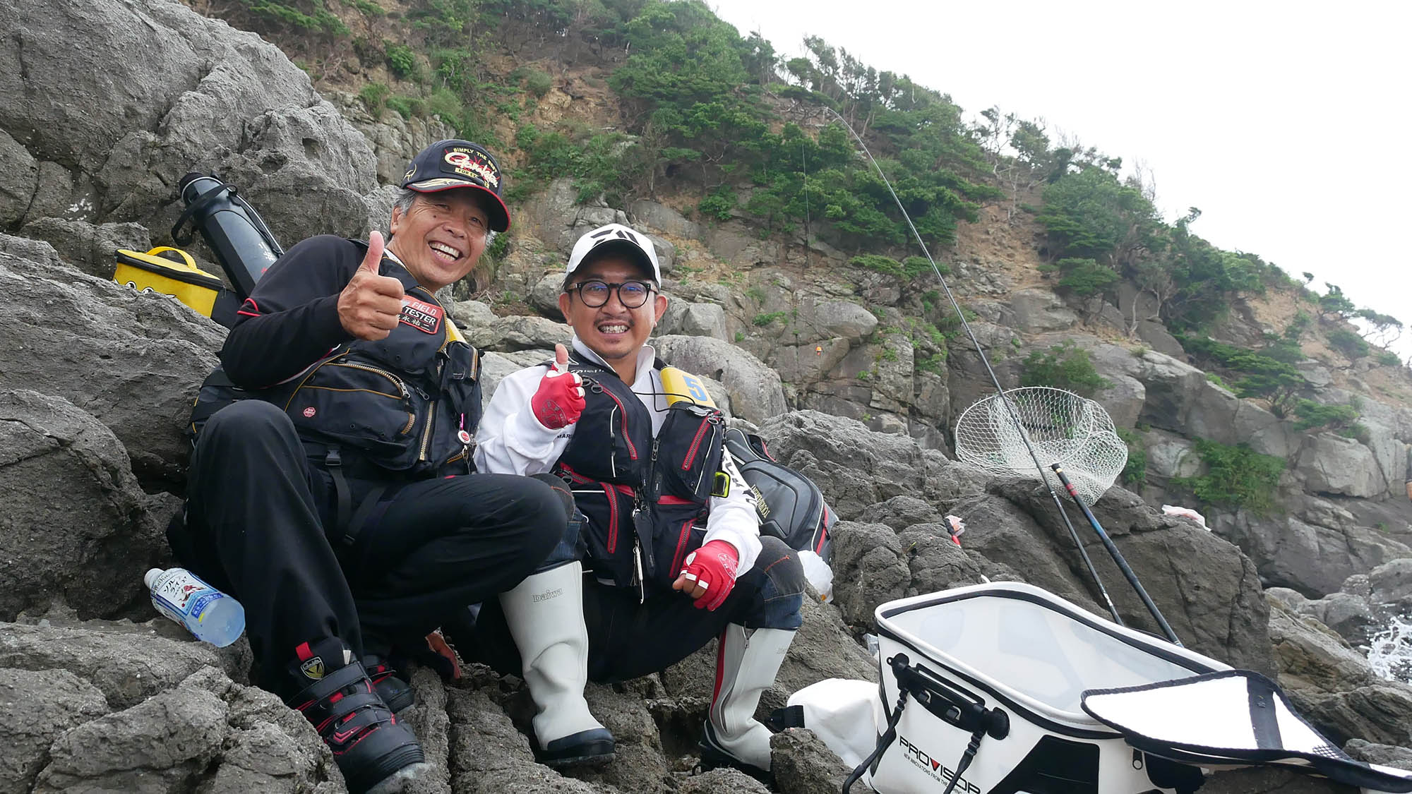 隣の磯の金只さんとホンさんの場所にも崖を越えて行くことが出来、ホンさんの大型グレの撮影も出来ました。少しの時間だったけど楽しい磯釣りを満喫です。
