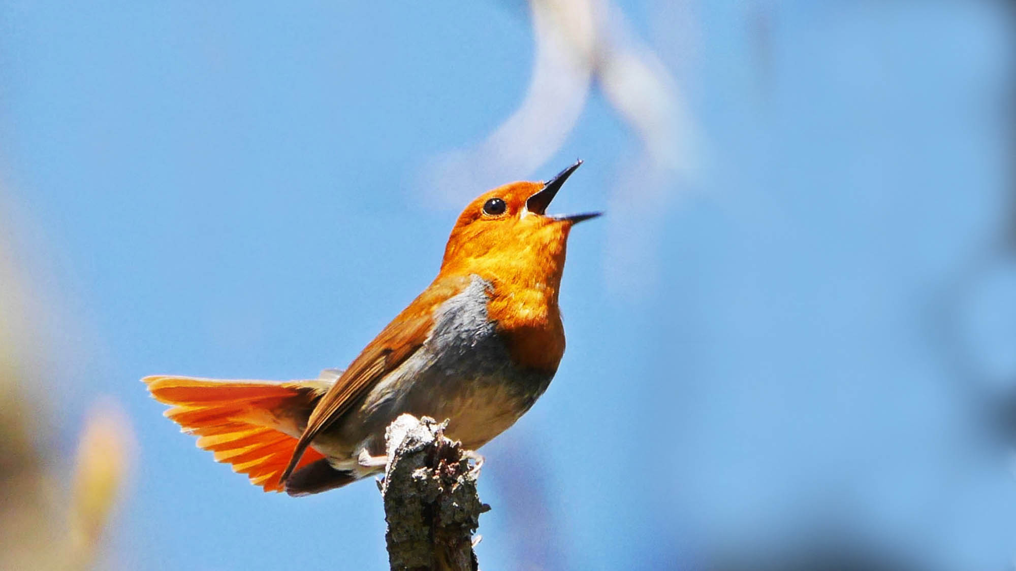 囀りの時には尻尾を上げて広げるのが彼らの鳴き方の様です