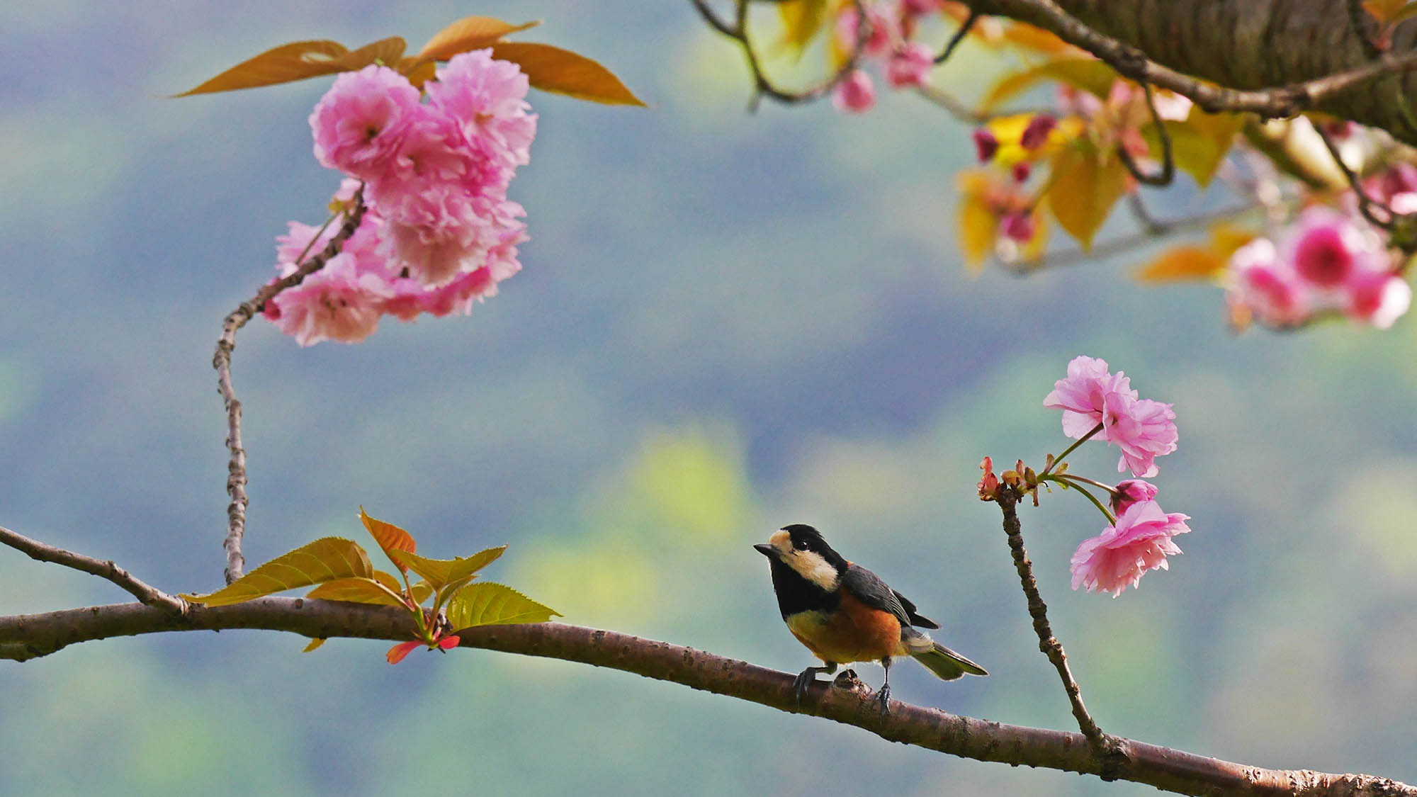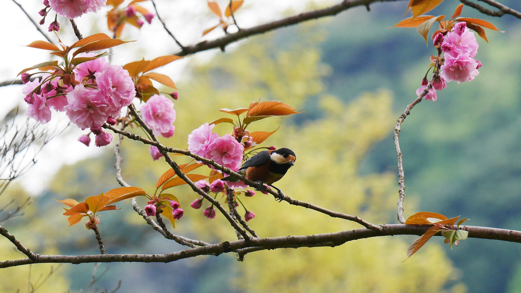 ボタンザクラとシジュウカラ