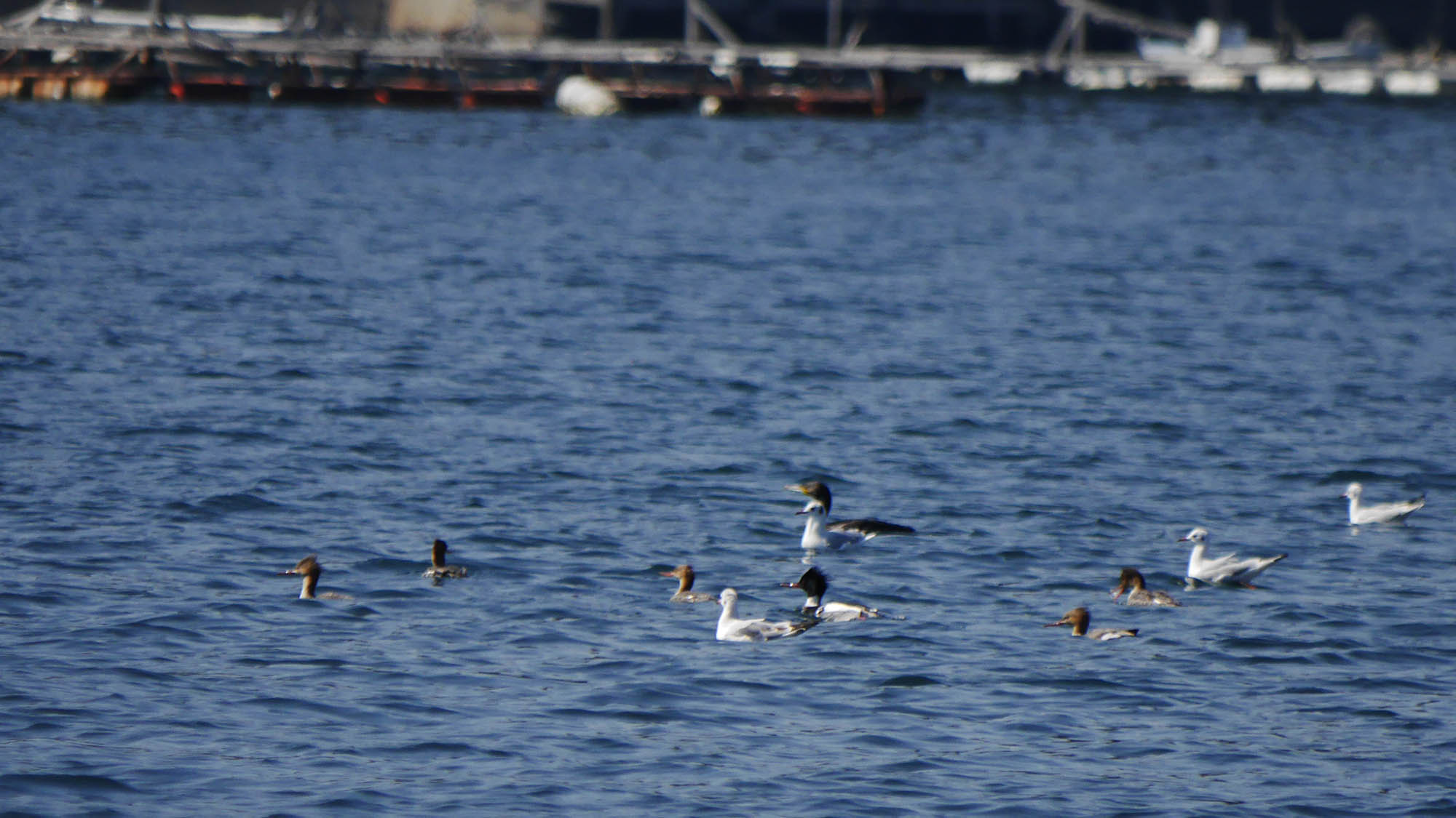 湾内にはウミアイサの♀の群れで一羽だけ♂、他にはユリカモメ