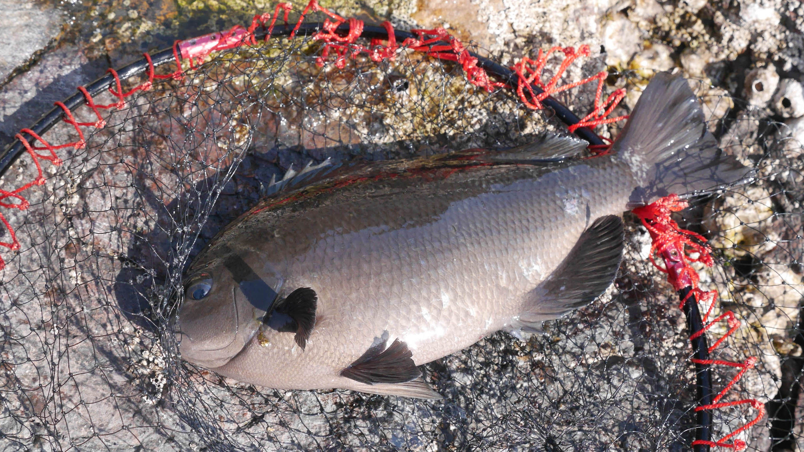 サンノジ(ニザダイ)は3回来て1枚はハリ外れ・・・これも悔しかったのですが、1枚の取り込みは、キナルバエから4番へと流れる下げ潮の際に大遠投。これは西からの風を利用できるから可能になりますが、マキエと仕掛けを4番方向へ大遠投しなければ不可能な釣果なのです。潮と風と釣り座が上手くマッチしなければ狙う事は出来ません。