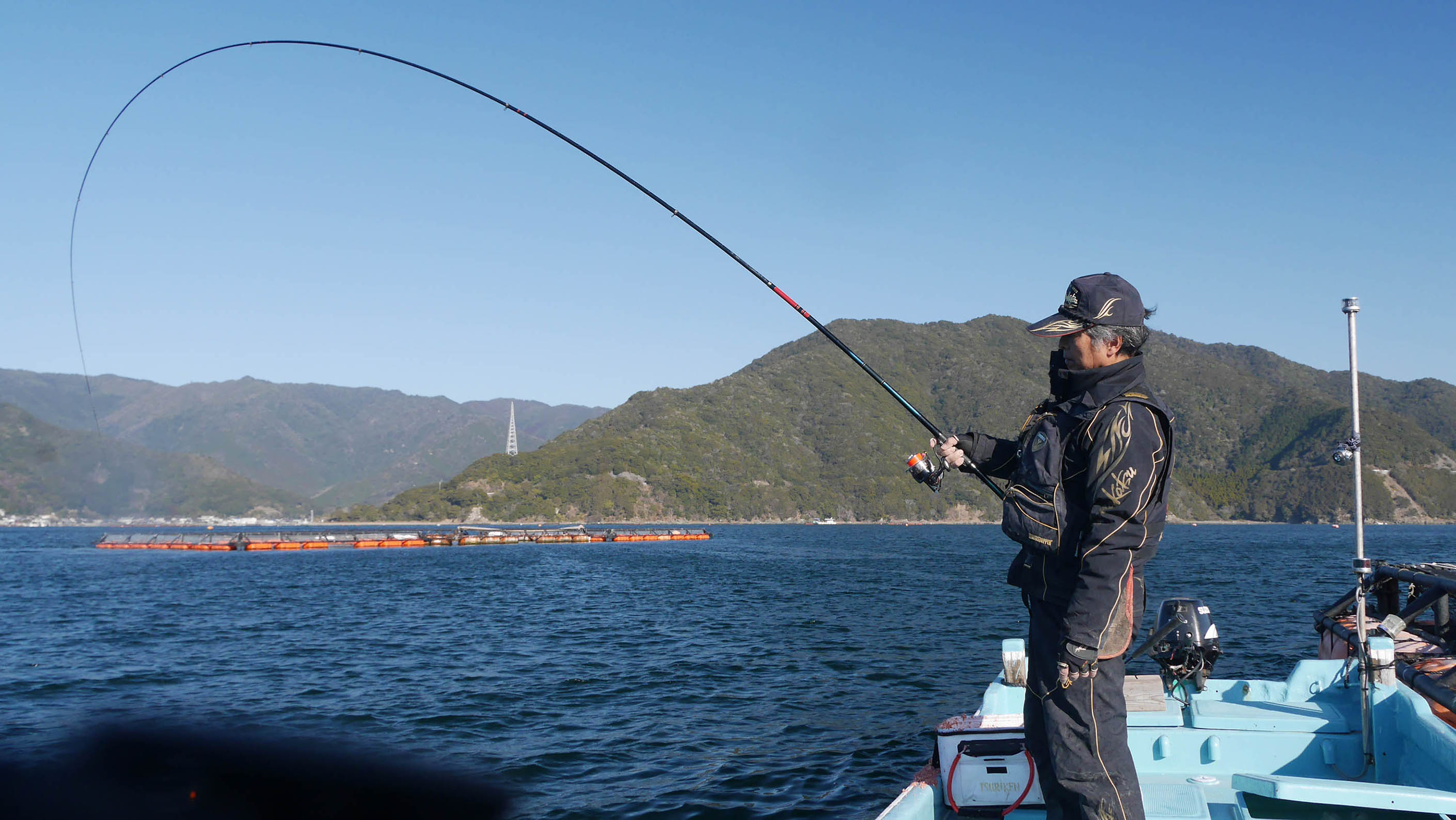 8時に出港して、11時過ぎまで湾内の新しい養殖イケスのカセ釣りに挑戦しました。ここは沖からの潮をまともに受ける場所なので、比較的水温も高く期待が持てます。