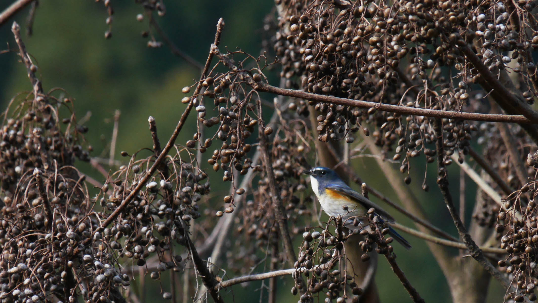 ルリビタキ2羽・シジュウカラ・コゲラ・・ハゼの実はいつまで有るかな?