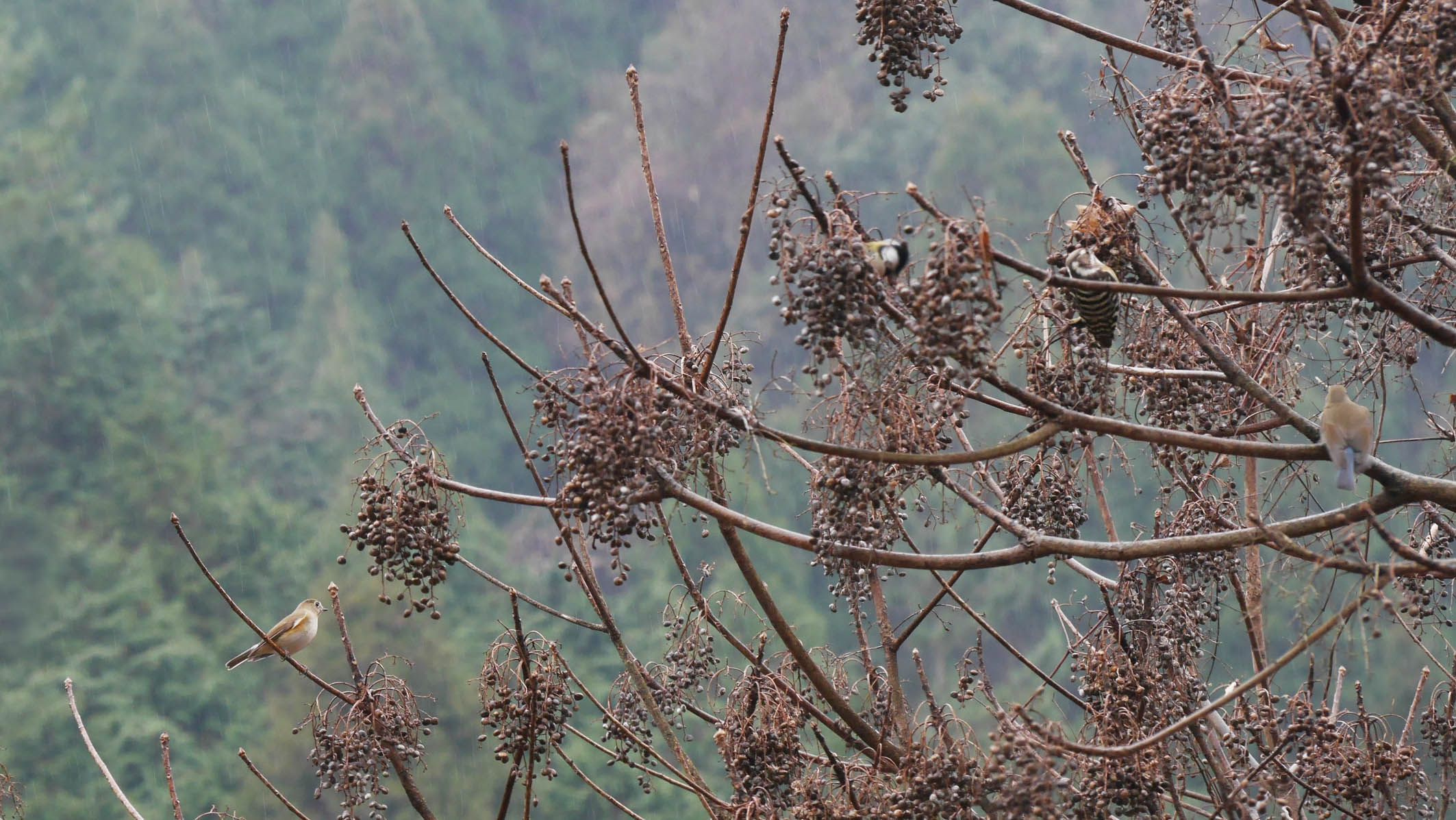 西からの強い風が残っていますが、ハゼの木の小鳥たちは出入りが活発です。