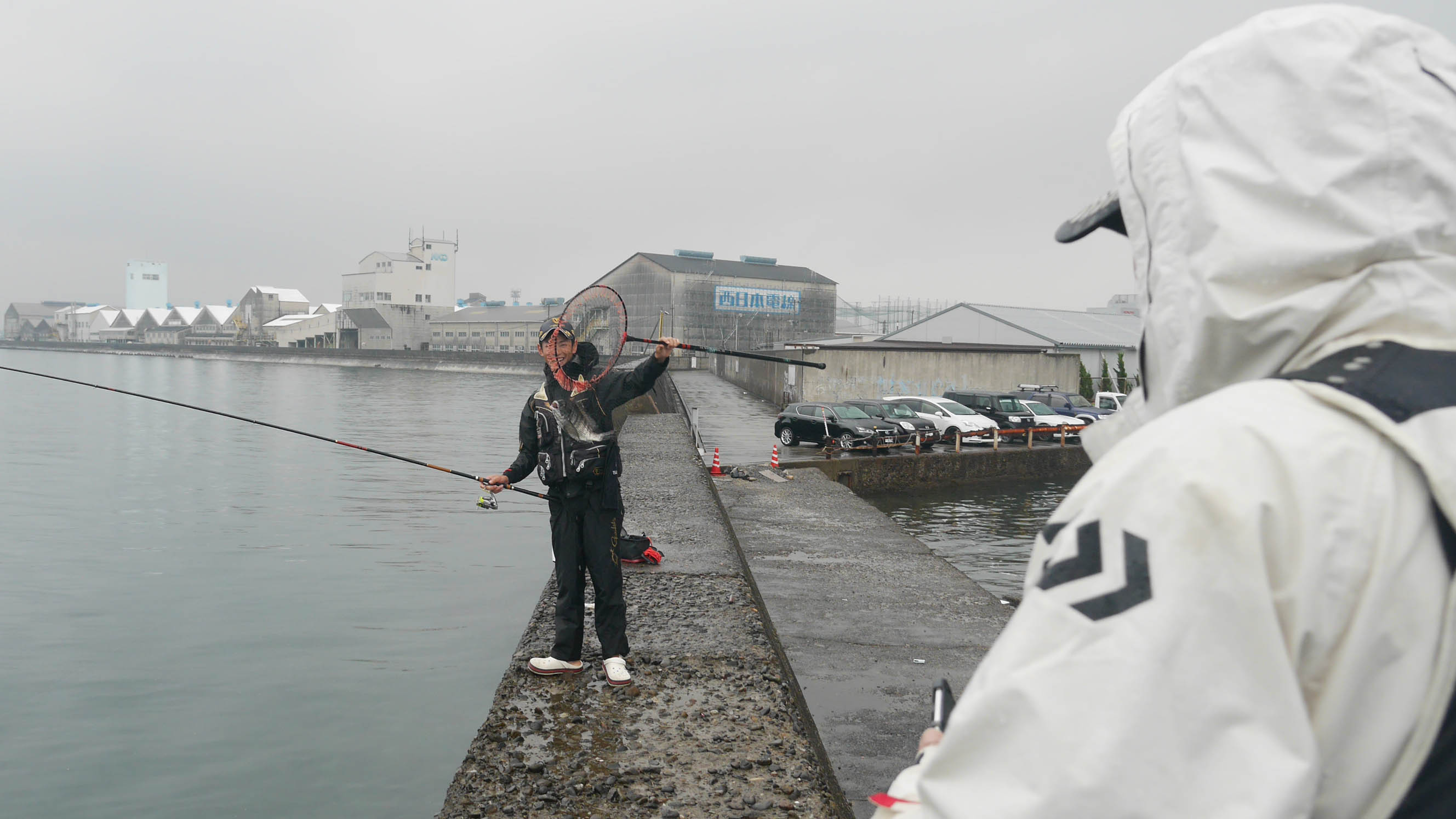 釣具スーパーイヴ春日店の紹介で、中3の衞藤君を技術指導です。11時に集合してマキエ作り、大在公共埠頭に移動すると、南東からの風が吹き抜けています。教えるには厳しい状況だったので、更に東の日吉原公共埠頭へと足を延ばしました。