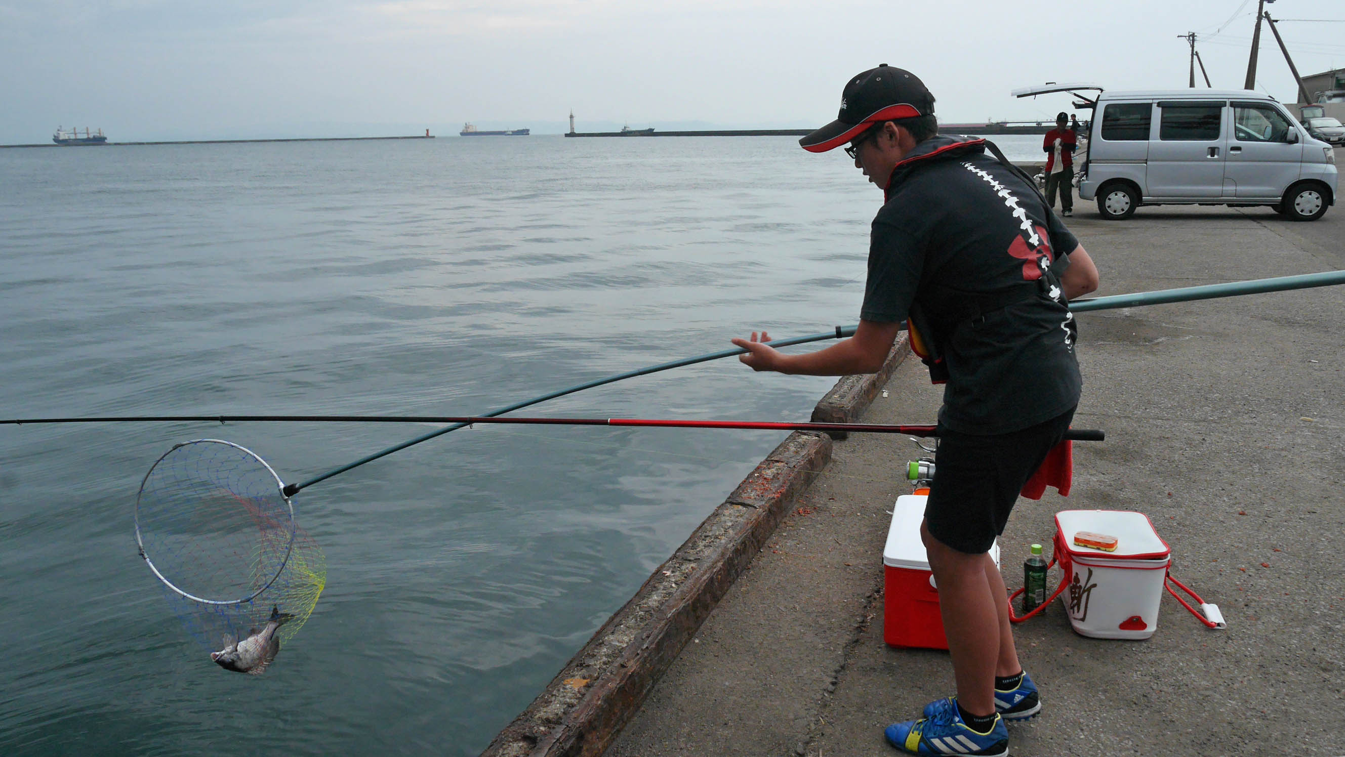 指導した事は、仕掛けの投入方法・散歩釣法・道糸の置く場所・風の強い時の道糸の沈め方・スマホや時計の利用方法など。今後の課題として、右利きなので左手でリールを巻く事と、それに伴うマキエは左右どちらもマスターする事などでした。