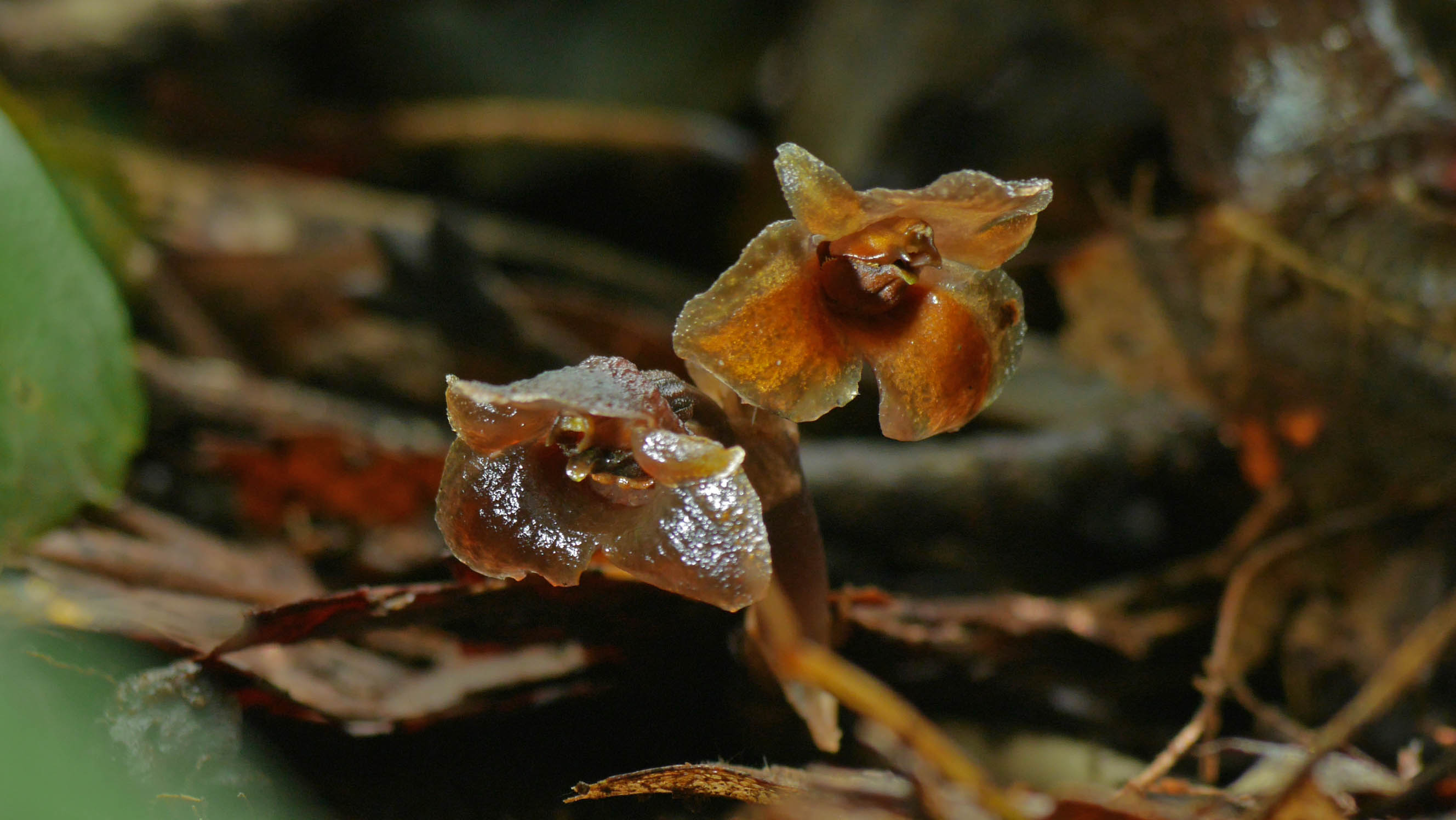 今年も出会えたクロヤツシロラン 隣にドングリの帽子