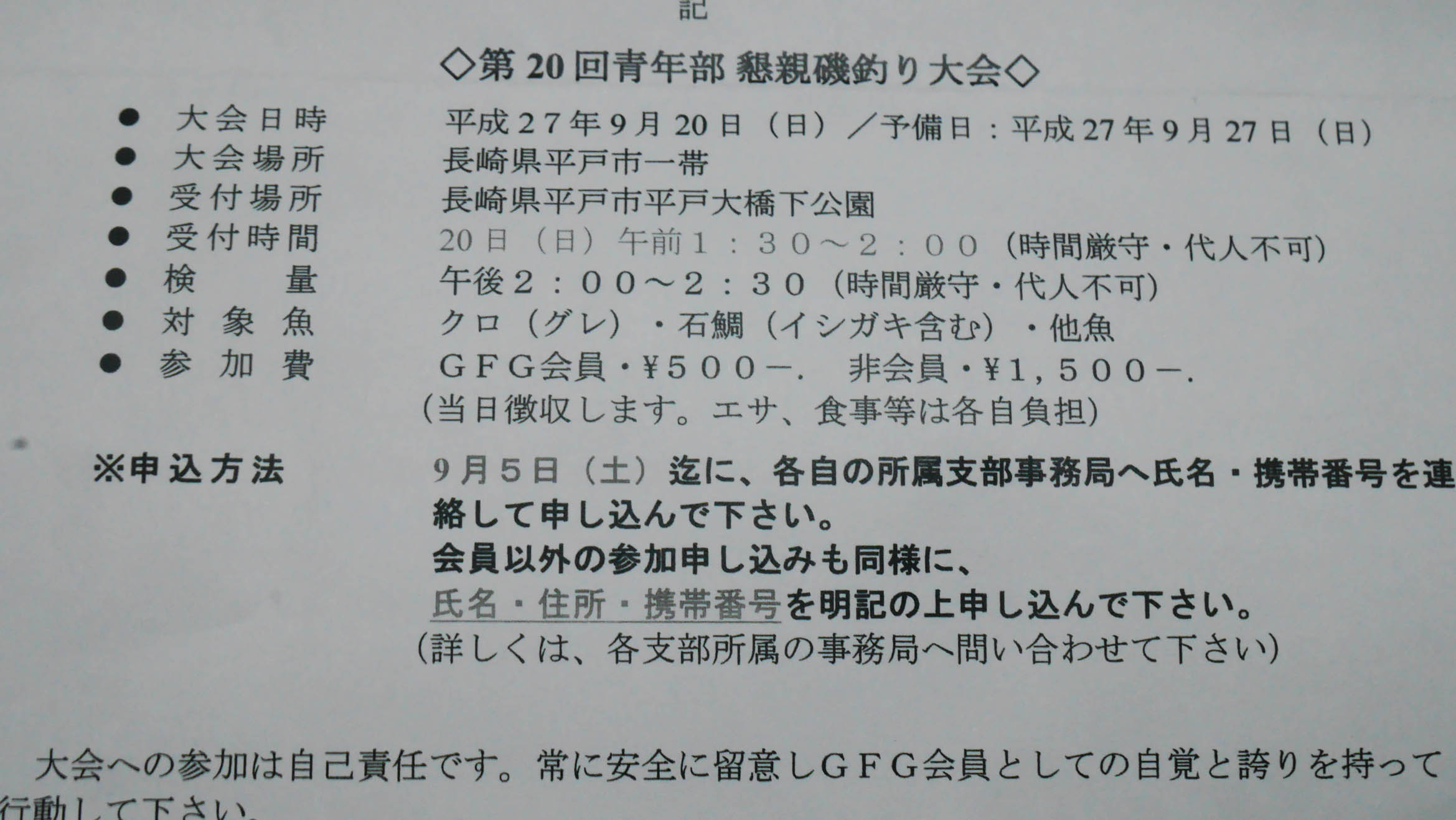 6月に22回目となるOGTMを51名の参加者を集めて無事に開催。8月29日には70名の参加を頂き夏季釣り講座を開催。そして今回は、チヌ釣り実釣講座を坂ノ市一文字防波堤で開催準備中。