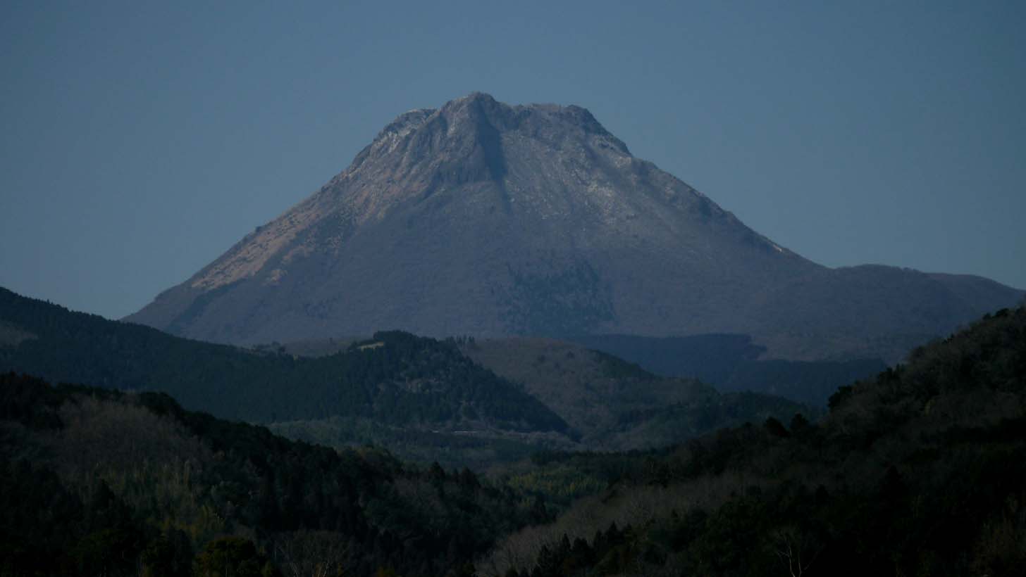 由布院の観光地を周っていると、近くにそびえ立っているのが由布岳です。由布院盆地付近から西回りで北側に回るまで、この様な双耳峰を見る事が出来ます。東から南東の大分市方面から見ると、富士山の様な形に見える事から、かなり昔から豊後富士と呼ばれているのは有名です。