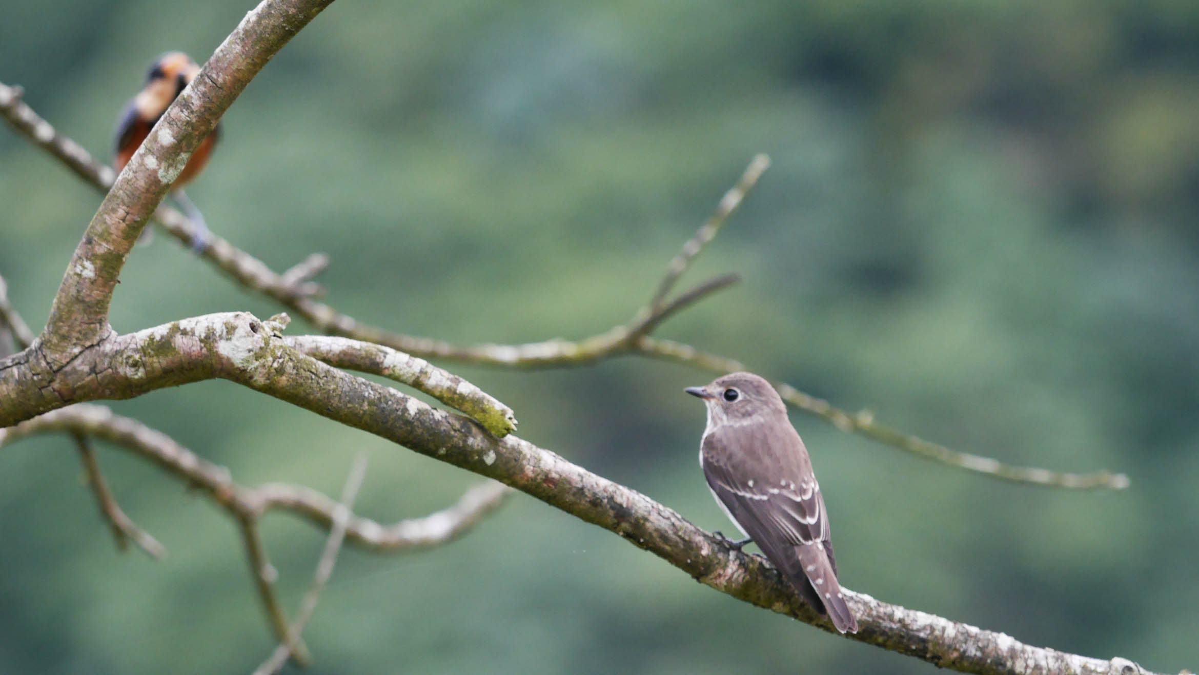 旅鳥のエゾビタキと留鳥のヤマガラ