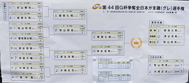 私が初めてG杯グレに参加したのが1987年(昭和62年)の第10回大会でした。この時の九州地区予選はトーナメント戦で4回戦を闘って優勝。全国大会は年末に日振島で開催され、一回戦で三原憲作さんに5㎏対0で完敗し、トーナメントに目覚めたのでした。