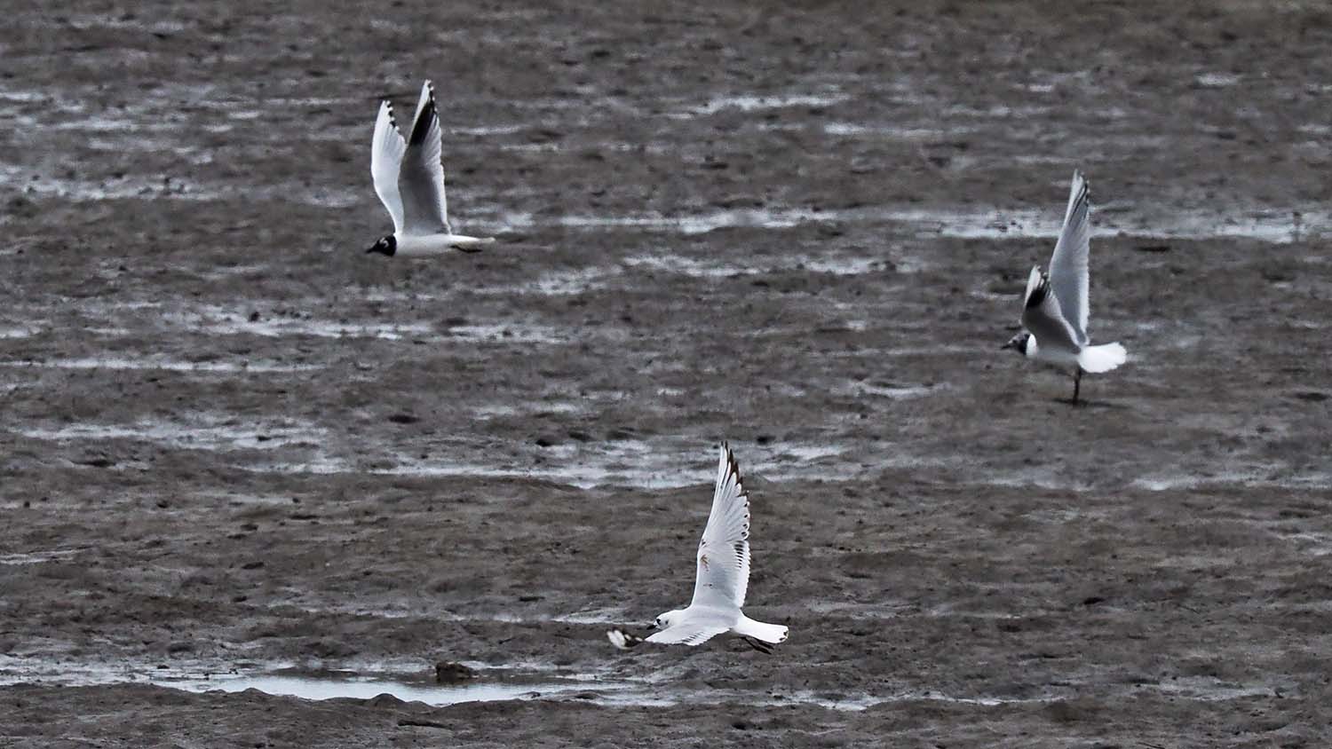 ズグロカモメ、頭が黒くない子・少し黒い子・かなり黒い子