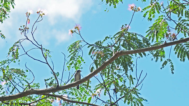 エゾビタキと合歓木の花のコラボは貴重