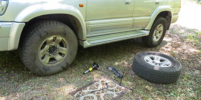 約5万キロ走ってこの車の初のパンクは、サイドが切れており修理不能。