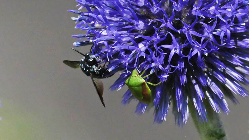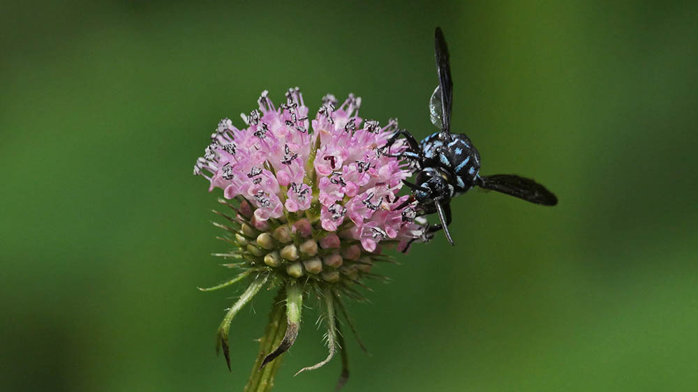 8月18日から、パークライン沿いのナベナの花に1匹のブルービー。