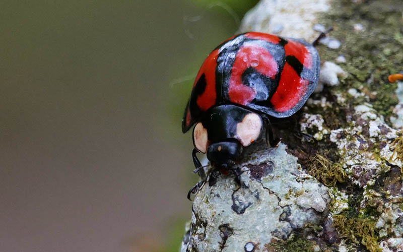 帰途の風穴で休憩すると、大きなカメノコテントウ