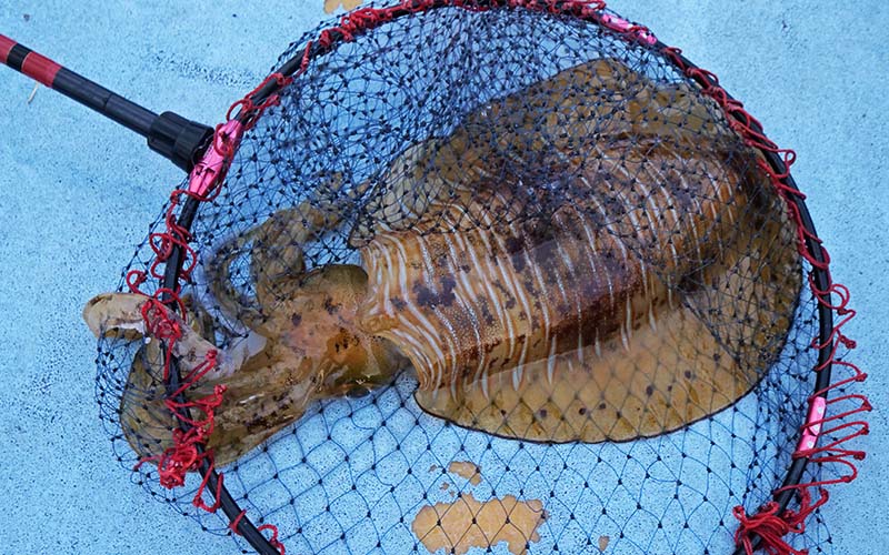 潮は更に緩くなって、満ち潮の流れに変わります。これまでノーガンでしたが、沖に出る潮に乗せる為、ゴム張りガン玉5号を取り付けた2投目、海面の道糸が僅かに伸びたアタリに合わせると磯際をめがけて突っ込んできます。