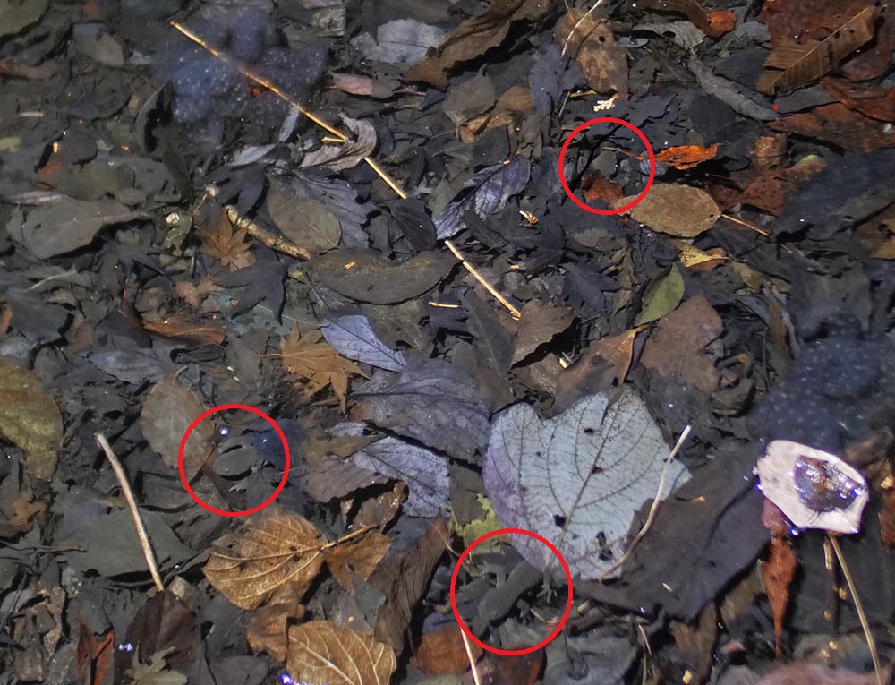 時折枯葉が動いて、サンショウウオらしき物体が何となく見える。