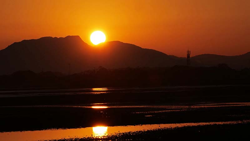 この場所は北西風に強い磯。昼前から風が強くなる予報なので瀬替わりはしない方が良い。日の出までウキの話に花が咲き、私は日の出を撮ってからゆっくりと仕掛けを作ります。なお子さんに好きな場所に入って貰って釣り開始。