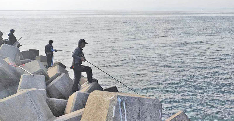 続く15日も黄金漁港で昼まで狙いで釣行しましたが、群れが見えるのは堤防から届かない位置に2ヶ所ほど。最終日は仕掛けもセットせずに釣り終了。