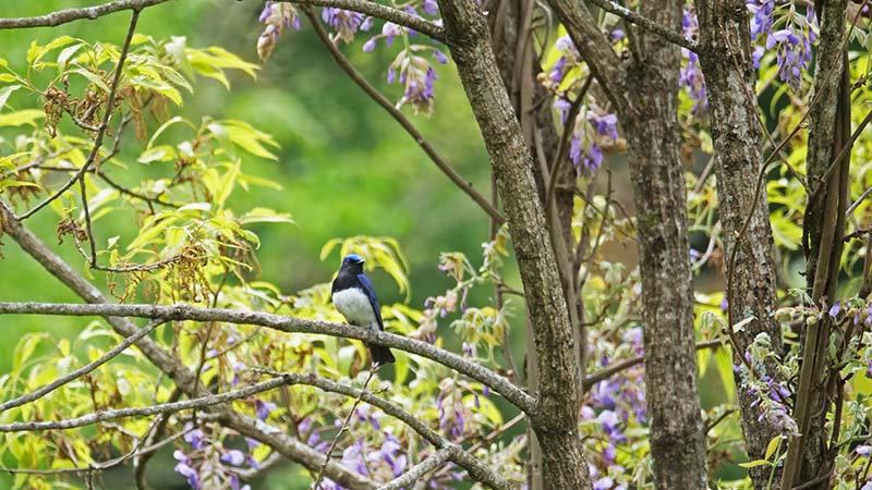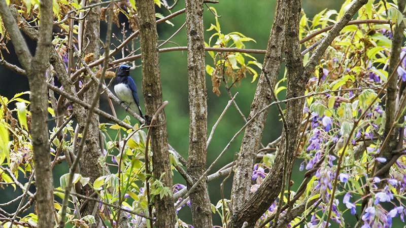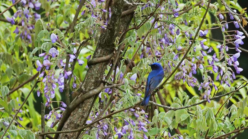 県民の森で、フジの花とオオルリがコラボ出来るスポットが有って、私たち仲間が期間限定の人気撮影スポットになっている車道を這っていました。