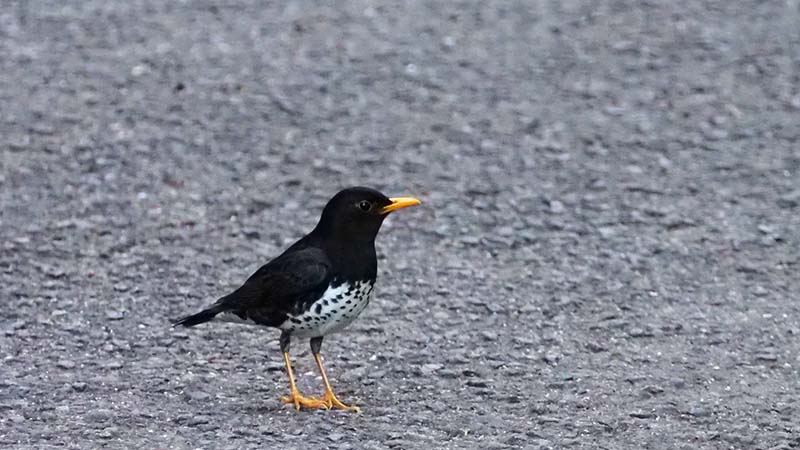 昨日はマムシ、今日はクロツグミが道路を横断