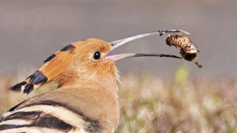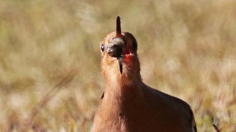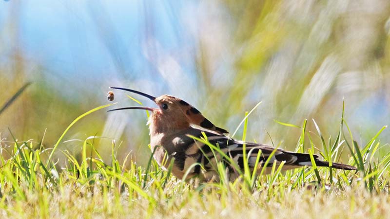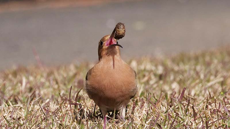 エサの食べ方は地中から虫を引き出すと、一旦地面に置きます。小さい虫は直ぐに呑み込みますが、大きな虫は再び咥えて地面に叩き付けながら殺します。頭から呑み込めるようにすると、虫を一旦離し顔を前に出して喉元へ入れます。